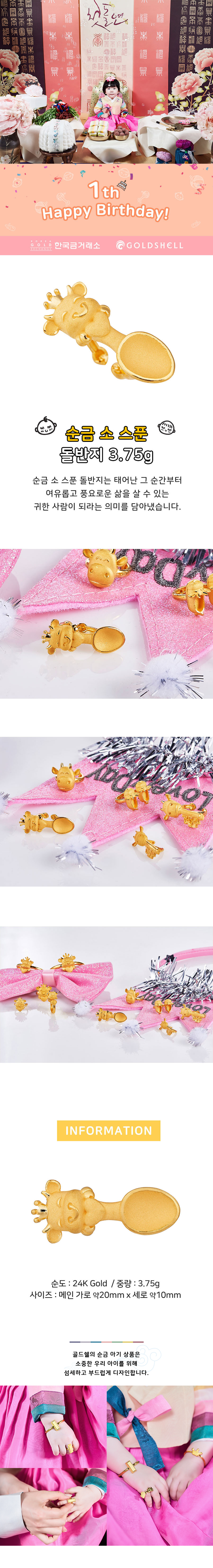순금 소 스푼 돌반지 3.75g